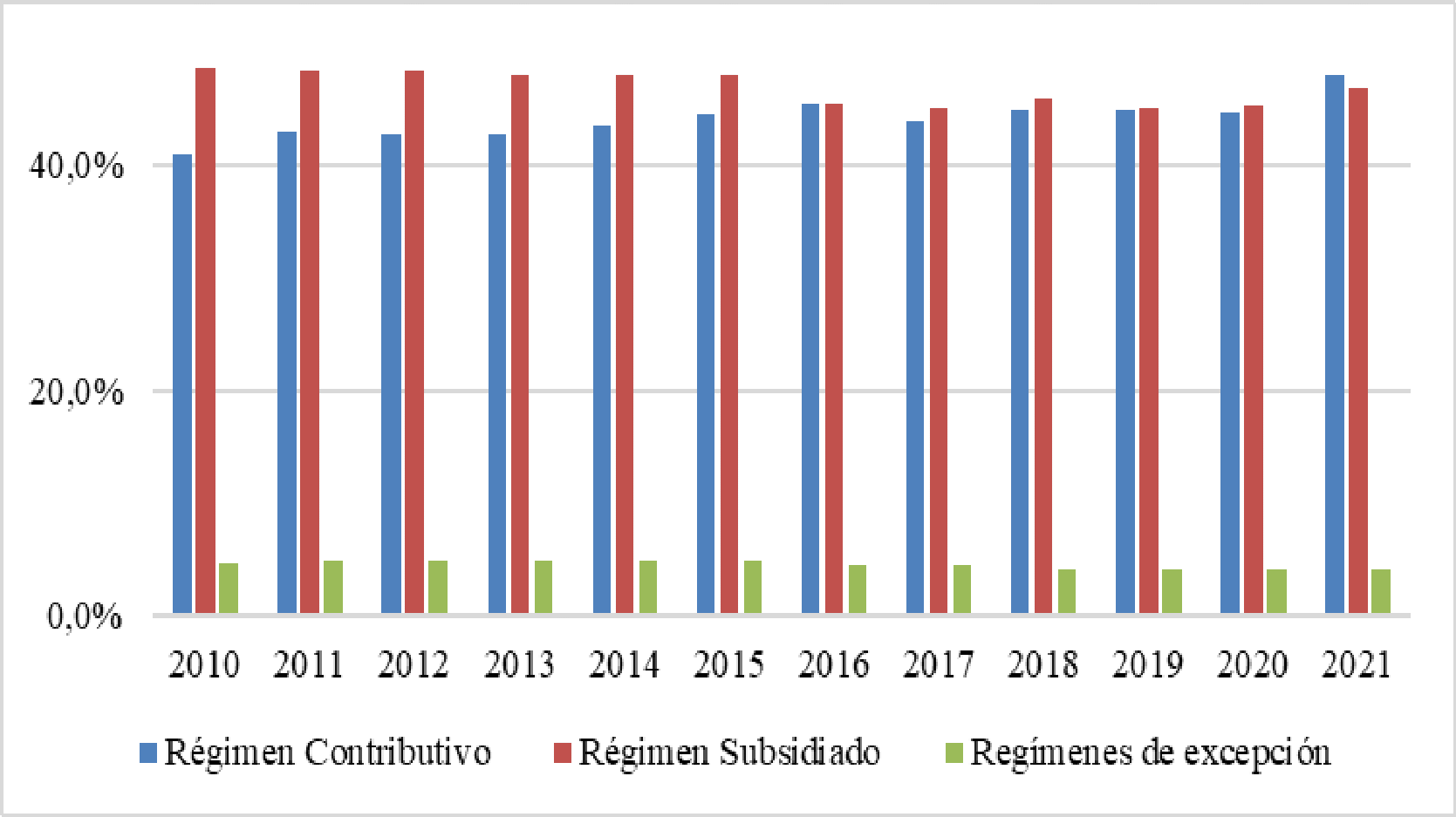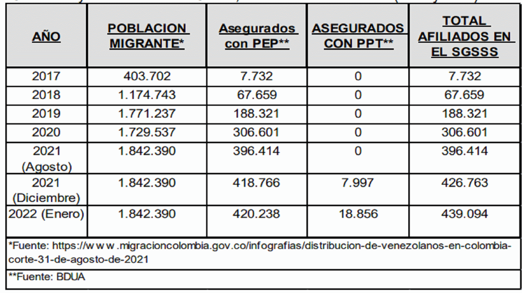 En cuanto a la asegurabilidad de los residentes del territorio nacional, se observó la implementación de medidas conducentes, tendientes a facilitar el ingreso y permanencia de los usuarios del sistema, tales como el MIAS y el Maite, el mecanismo de protección al cesante, la contribución solidaria creada en el artículo 242 de la Ley 1955 de 2019 y la regulación de la movilidad dentro del sistema. Además, el rector de la política pública acreditó resultados positivos en materia de afiliación que a 2021 se ubicó en un 99%. De igual forma, evidenció que el aseguramiento entre el 201 y 202 tuvo un incremento promedio de 5 puntos porcentuales, el cual resulta ser significativo y permitió 8.821.649 de nuevos afiliados al SGSSS, pues en el 2010 estaban asegurados 42.506.800 y en el 2021, 51.328.449, lo que demuestra un avance significativo en materia de aseguramiento, ocasionado en parte por la actualización.