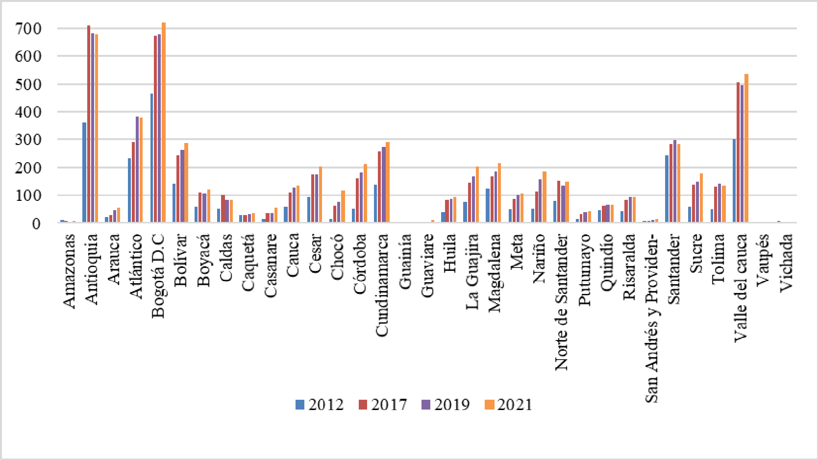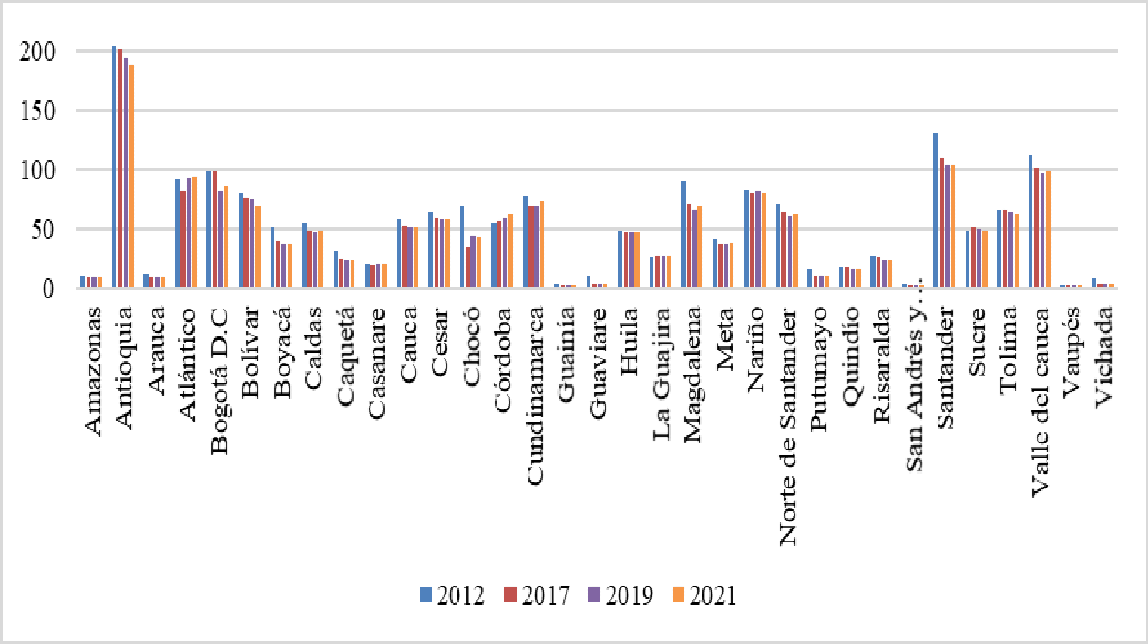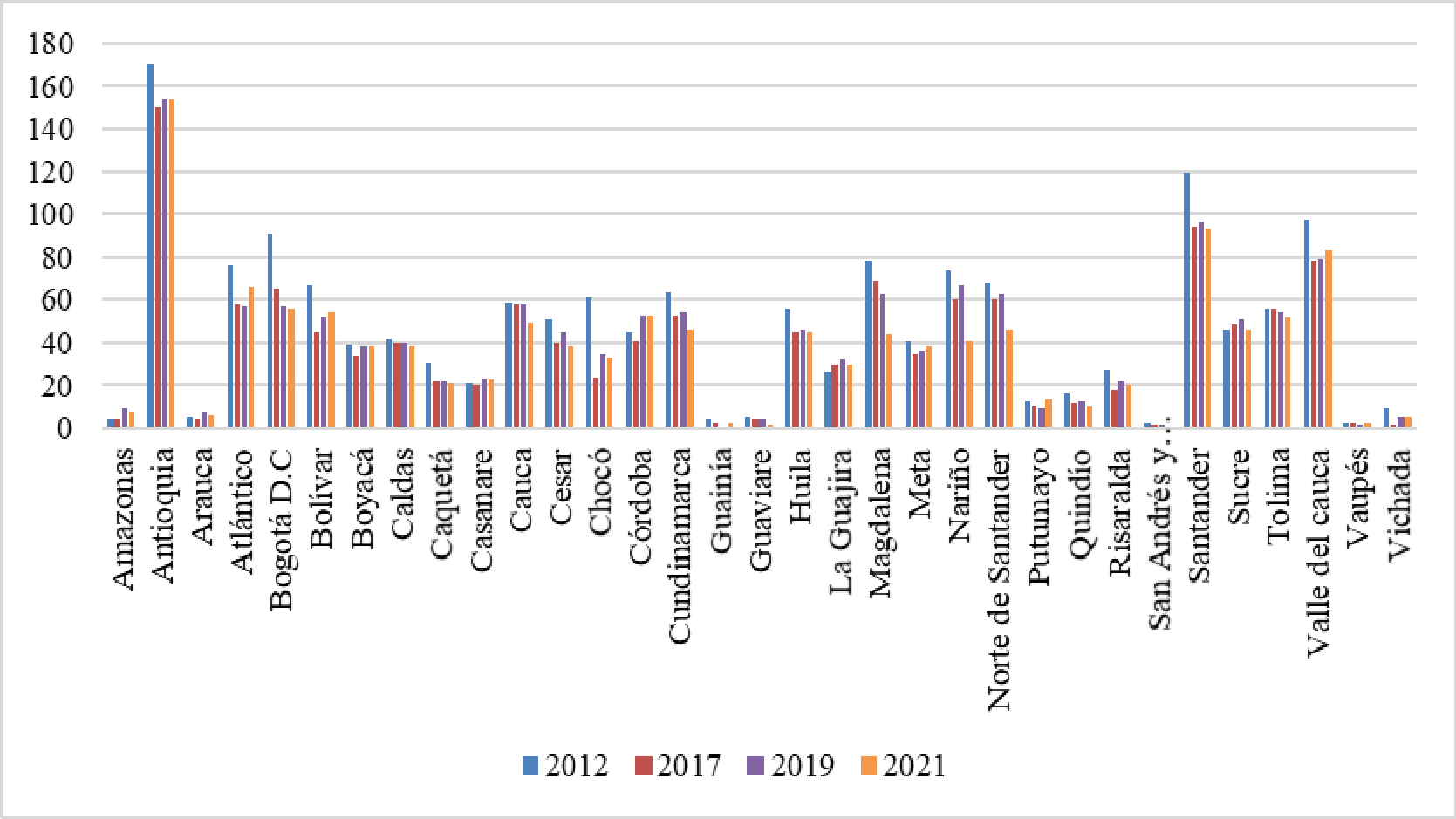 Respecto de la accesibilidad física, se evidenció que pese a que en Bogotá y los principales departamentos del país como Antioquia, Valle del Cauca y Atlántico, han contado con mayor capacidad instalada para ofrecer servicios de salud, se continúan presentando problemas de infraestructura en territorios dispersos, tal es el caso de departamentos como Guaviare, San Andrés, Vaupés y en general este tipo de departamentos que desde el año 2012 al 2021 mostraron disminuciones en el número de servicios de en la oferta de servicios de pediatría, salas de parto, ginecología, medicina general, ginecobstetricia, urgencias, psiquiatría y medicina interna, es decir, que persisten las brechas de desigualdad e inequidad en aquellos territorios, lo que ha impedido la materialización de la orden analizada.