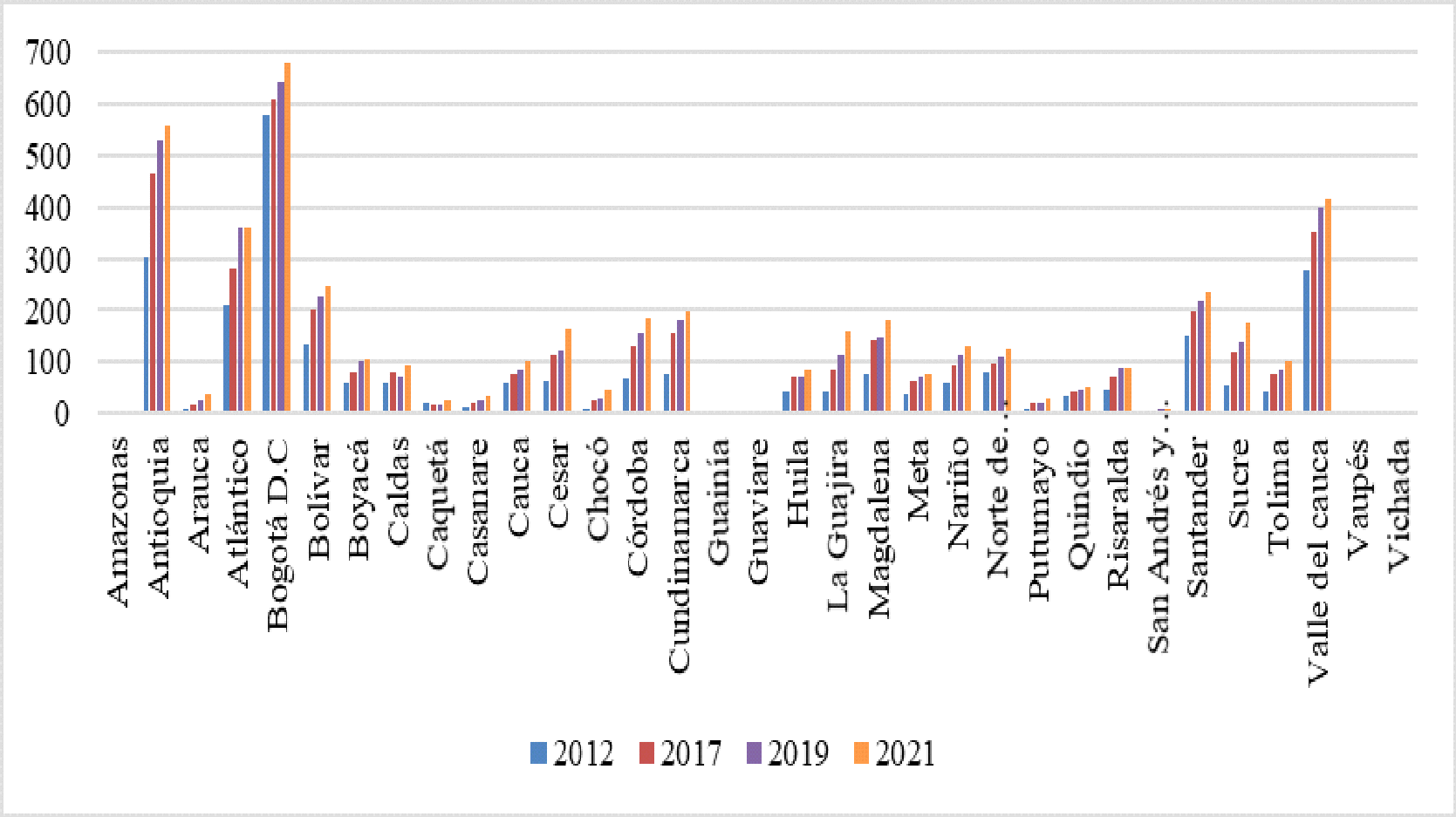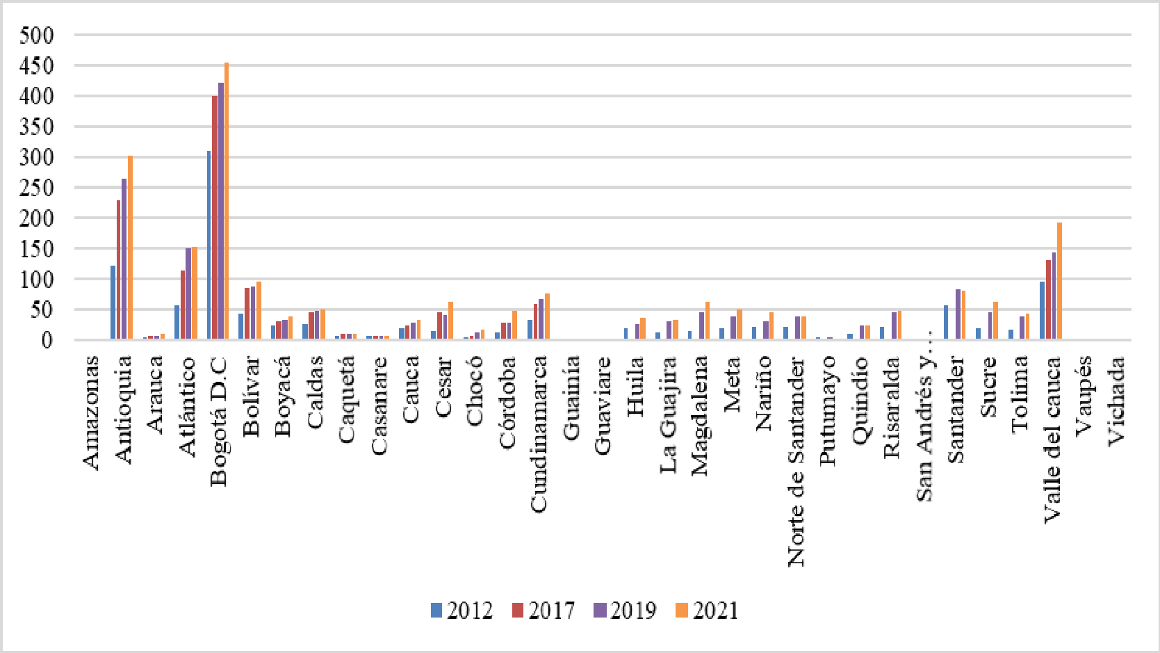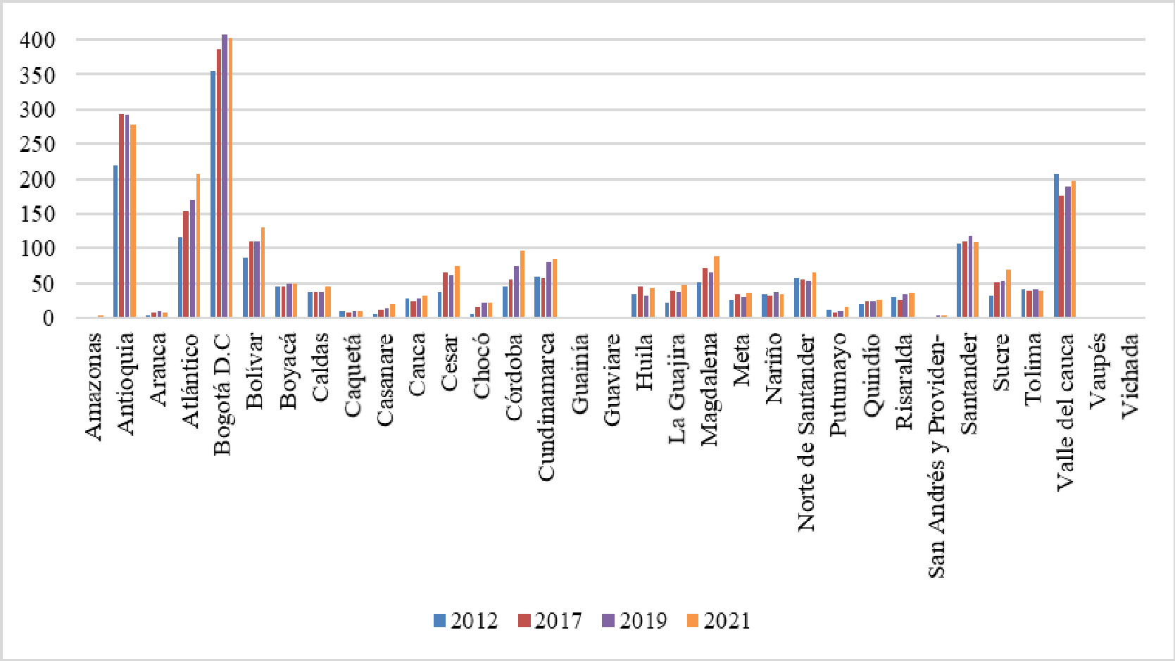 Respecto de la accesibilidad física, se evidenció que pese a que en Bogotá y los principales departamentos del país como Antioquia, Valle del Cauca y Atlántico, han contado con mayor capacidad instalada para ofrecer servicios de salud, se continúan presentando problemas de infraestructura en territorios dispersos, tal es el caso de departamentos como Guaviare, San Andrés, Vaupés y en general este tipo de departamentos que desde el año 2012 al 2021 mostraron disminuciones en el número de servicios de en la oferta de servicios de pediatría, salas de parto, ginecología, medicina general, ginecobstetricia, urgencias, psiquiatría y medicina interna, es decir, que persisten las brechas de desigualdad e inequidad en aquellos territorios, lo que ha impedido la materialización de la orden analizada.