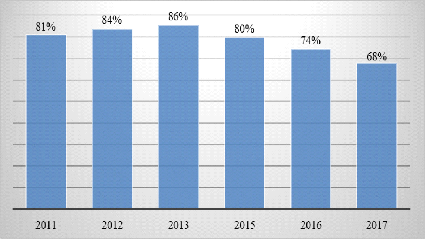 Lo anterior, dio a conocer una disminución en la percepción de calidad en la prestación del servicio de salud en los encuestados, la cual comenzó en 2011 en un 81% pero seis años después, se encontraba en 67.6%, lo que evidencia problemas en cuanto a la forma como se prestan dichos servicios; información que solo se reportó en torno a este ítem hasta el año 2017, toda vez que para los años 2018 a 2021 no se generó el consolidado sobre este puntwww.dane.gov.co/files/investigaciones/condiciones_vida/calidad_vida/Boletin_Tecnico_ECV_2018.pdf.
