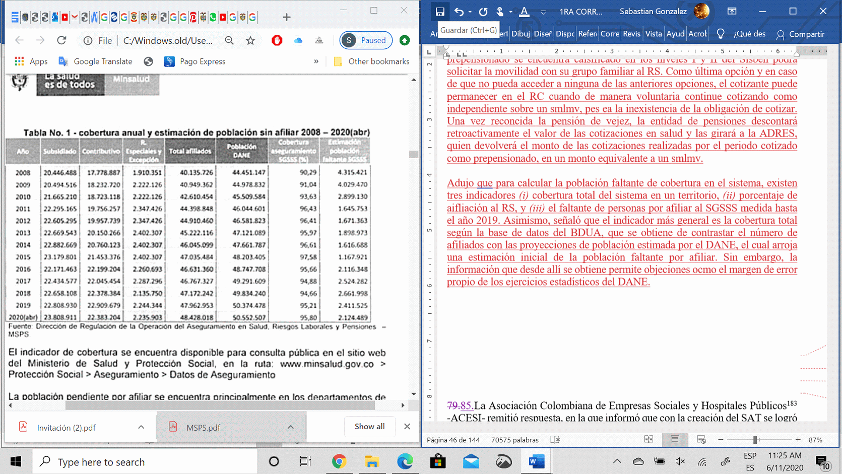 En el sexto informe de seguimiento, la Defensoría del Puebl presentó un balance positivo, toda vez que el porcentaje de afiliados superaba el 96%. Agregó que los aportes al RC lograban darle estabilidad al sistema y solventaban a quienes hacían parte del RS, aunado a las inversiones hechas por parte del Gobierno nacional y las entidades territoriales -ET-. No obstante, criticó el acceso efectivo al sistema, ya que pese al aumento notorio que se había presentado en materia de afiliación, los avances en cuanto a infraestructura y calidad del servicio no fueron significativos. Destacó la vulnerabilidad de las poblaciones geográficamente dispersas -PGD- y los malos sistemas de información, lo que conllevó a que se presentaran problemas de confiabilidad, lo que dejó ver una clara debilidad de las ET en el cumplimiento oportuno de sus competencias.