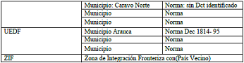 La Ley 191 de 1995 definió los distintos fenómenos relacionados con las dinámicas de las zonas de frontera en los siguientes términos, i) Zonas de Frontera, que como se mencionó al principio de este documento, son los municipios y departamentos colindantes con los límites de de Colombia, en los que es marcada la dinámica fronteriza; ii) Unidades Especiales de Desarrollo Fronterizo, los cuales debían ser municipios orientados funcionalmente como polos de desarrollo dentro de las zonas de frontera, y, iii) Zonas de Integración Fronteriza, conformadas por áreas delimitadas binacionalmente con el fin de potenciar procesos de integración.