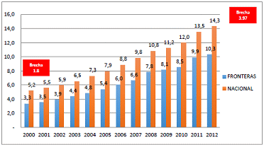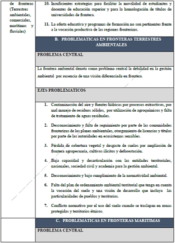 Adicionalmente y de acuerdo al diagnóstico elaborado, se identifica que la problemática fronteriza a pesar de ser particular considerando el tipo de frontera o país limítrofe, se tiene que, todos los territorios fronterizos presentan diferencias sustanciales con relación al comportamiento de los mismos indicadores medidos a nivel regional y/o nacional. Lo anterior implica que para la elaboración de este Documento de política, se consideran dichas brechas y la totalidad de las fronteras en aras de la integralidad de la política aquí planteada.