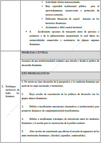 Dada la persistencia de los problemas estructurales en las fronteras, el capítulo cuarto identifica el problema central que pretende atender este documento de política pública, el cual gira en torno a la dificultad que tienen los municipios y departamentos de fronteras para aprovechar sus potencialidades de modo que logren apalancar su desarrollo en las capacidades endógenas de sus territorios.