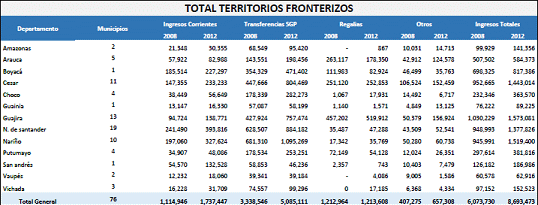 El Plan Nacional de Desarrollo 2010-2014 “Prosperidad para Todos”, definió la incorporación, de las áreas fronterizas, terrestres y marítimas como elemento esencial de propósito nacional para el desarrollo. Así mismo, dispuso promocionar el diseño de políticas públicas que reconozcan las particularidades de las regiones fronterizas identificando sus activos sociales y naturales como recursos estratégicos y de oportunidad para un desarrollo endógeno de las regiones fronterizas y para el impulso de la competitividad del país.