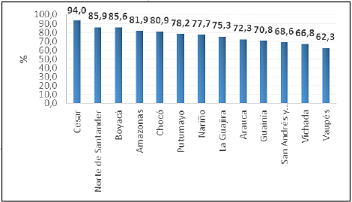 27. En departamentos como Vichada, Guainía, Vaupés, Putumayo, Chocó, parte de Nariño y Guajira.