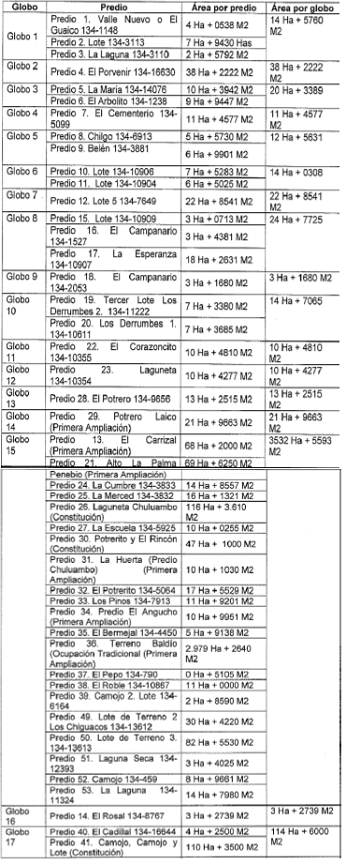 Predios: Valle Nuevo o El Guaico 134-1148; Lote 134-3113; La Laguna 134-3110