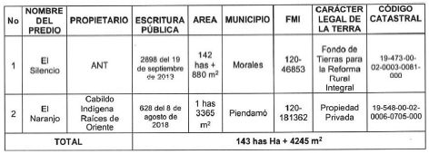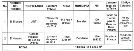 El Silencio: el cual fue adquirido por el extinto Incoder mediante escritura pública N° 2898 del 19 de septiembre de 2013, cuya destinación fue la legalización de tierras a las comunidades indígenas del cauca (sic), y cuya entrega material al cabildo indígena Raíces de Oriente se realizó el día 6 de octubre de 2013.