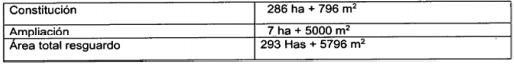 1.3.1. Que el área con la que se constituyó el resguardo es de doscientas ochenta y seis hectáreas más setecientos noventa y seis metros cuadrados (286 ha + 796 m2), que sumadas al área objeto de la ampliación, de siete hectáreas más cinco mil metro cuadrados (7 ha + 5.000 m2), asciende a un área total superficiaria de doscientos noventa y tres hectáreas mas cinco mil setecientos noventa y seis metros cuadrados (293 ha + 5.796 m2).