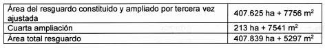| Área total resguardo + cuarta ampliación | 407.839 ha+ 5297 m2 | 100.00% |
