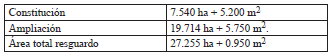 1.3.1. Que el área con la que se constituyó el resguardo es de siete mil quinientas cuarenta hectáreas y cinco mil doscientos metros cuadrados (7.540 ha + 5.200 m2), que sumadas al área objeto de la ampliación, de diecinueve mil setecientos catorce hectáreas más cinco mil setecientos cincuenta metros cuadrados (19.714 ha + 5.750 m2), arroja un total de área superficiaria de veintisiete mil doscientas cincuenta y cinco hectáreas y novecientos cincuenta metros cuadrados (27.255 ha + 0.950 m2).