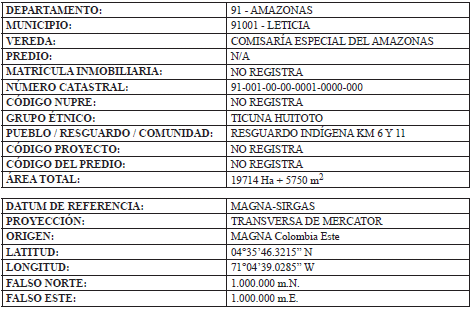 1.1. Área de constitución del Resguardo Indígena Ticuna Huitoto Kilómetro 6 y 11