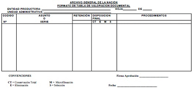 Las entidades de la Administración Pública adoptarán el formato de Tabla de Valoración Documental, que se adjunta en el presente Acuerdo.