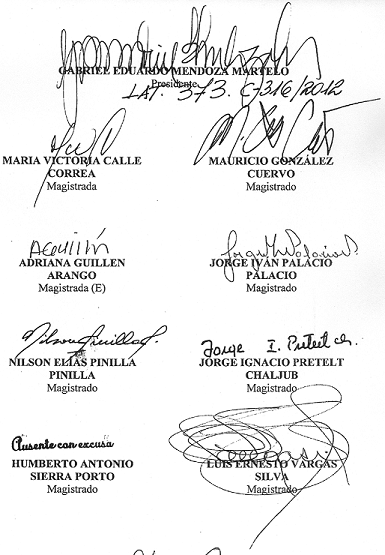| 38 | Sentencias T-93/10, T-628/10, T-633/09, T-1029/05, T-917/05 y T-833/05; y las sentencias de constitucionalidad C-1156/08, C-276/06, C-038/06, C-863/04, C-315/04, C-578/02, C-287/02, C-442/96, C-137/1996 y C-563/1992. |