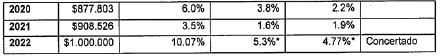 *Incremento real para 2022 calculado con la inflación proyectada por el Banco de la República para 2021.