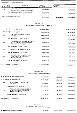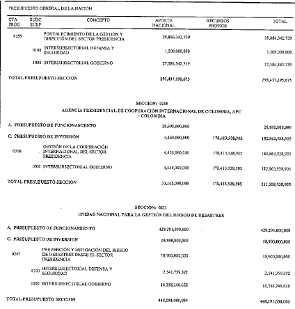 ARTÍCULO 2. PRESUPUESTO DE GASTOS O LEY DE APROPIACIONES. Aprópiese para atender los gastos de funcionamiento, inversión y servicio de la deuda pública del Presupuesto General de la Nación durante la vigencia fiscal del 10. de enero al 31 de diciembre de 2021 una suma por valor de: TRESCIENTOS TRECE BILLONES NOVECIENTOS NOVENTA Y OCHO MIL CATORCE MILLONES CUARENTA Y CUATRO MIL OCHOCIENTOS CINCUENTA Y UN PESOS MONEDA LEGAL ($313.998.014.044.851), según el detalle que se encuentra a continuación: