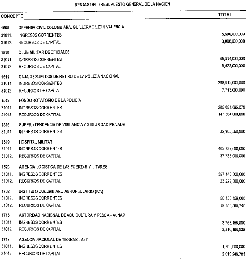 ARTÍCULO 1. PRESUPUESTO DE RENTAS Y RECURSOS DE CAPITAL. Fíjense los cómputos del presupuesto de rentas y recursos de capital del Tesoro de la Nación para la vigencia fiscal del 1. de enero al 31 de diciembre de 2021, en la suma de TRESCIENTOS TRECE BILLONES NOVECIENTOS NOVENTA Y OCHO MIL CATORCE MILLONES CUARENTA Y CUATRO MIL OCHOCIENTOS CINCUENTA Y UN PESOS MONEDA LEGAL ($313.998.014.044.851), según el detalle del Presupuesto de Rentas y Recursos de Capital para el 2021, así: