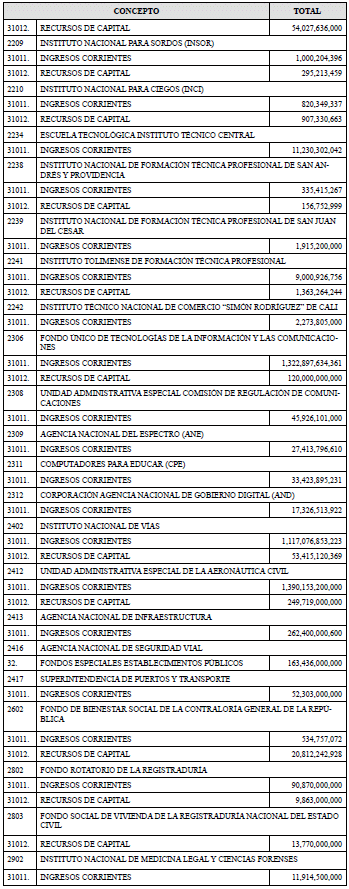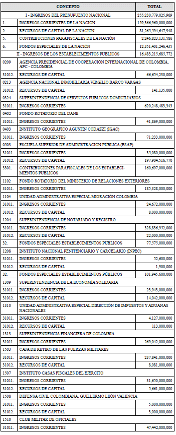 RENTAS DEL PRESUPUESTO GENERAL DE LA NACIÓN