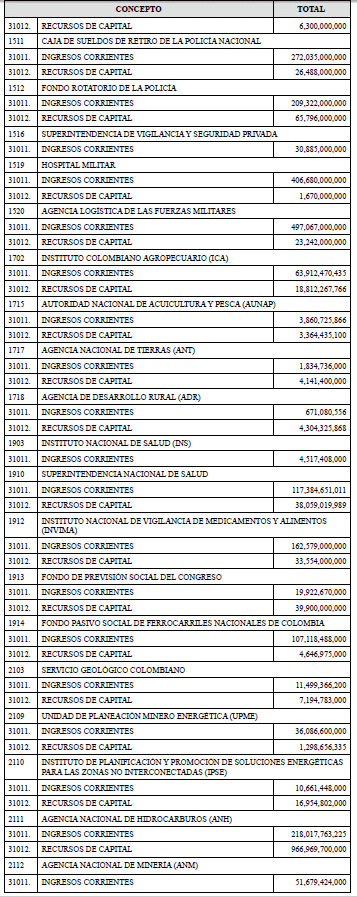 La Dirección General del Presupuesto Público Nacional del Ministerio de Hacienda y Crédito Público hará mediante resolución, las operaciones que en igual sentido se requieran durante el transcurso de la vigencia.