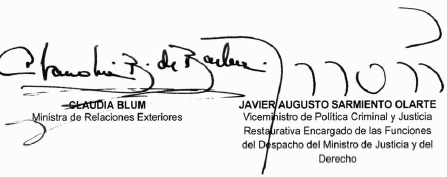 Presentado al Honorable Congreso de la República por la Ministra de Relaciones Exteriores y al Viceministro de Política Criminal y Justicia Restaurativa Encargado de las Funciones del Despacho del Ministro de Justicia y del Derecho.