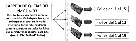 Cada expediente de la carpeta se debe follar de forma independiente de 1 a (n,) estopara que la foliación de uno no afecte a la de otro expediente en la medida que segestione y trámite la petición, ejemplo: