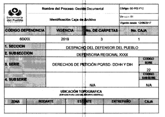 9. Se deben identificar las cajas institucionales que contienen las carpetas de los expedientes según Formulario GD-PO2-F12 "Identificación de cajas"