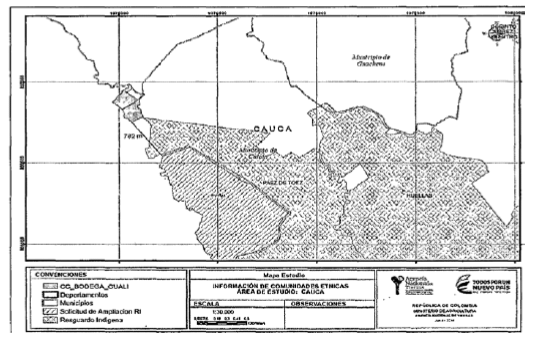 De acuerdo al cruce de información geográfica ACCTl-F-091 de 22 de mayo de 2018, se evidencia un presunto traslape de solicitud de ampliación del resguardo indígena Huellas de Caloto, no obstante, conforme al memorando número 20185100114083 del 24 de julio de 2018, una vez verificado el expediente de solicitud de ampliación del Resguardo Huellas, localizado en Caloto, Cauca, se pudo evidenciar que los predios: El Guásimo identificado con el folio de matrícula inmobiliaria número 124-403 del Círculo registral del municipio de Caloto y escritura pública número 1517 del 4 de abril de 2014 de la Notaría Tercera del Círculo de Popayán; El Gúasimo identificado con el folio de matrícula inmobiliaria número 124-19176 del Círculo registral del municipio de Caloto.y escritura pública número 2178 del 15 de julio de 2014 de la Notaría Segunda del Círculo de Popayán, adquiridos por el extinto Incoder y entregados materialmente y de manera provisional a la Comunidad Negra de Bodega-Gualí mediante actas del 13 de mayo de 2014 y 1o de septiembre de 2014 respectivamente, que serán objeto de Titulación Colectiva del Consejo Comunitario Bodega- Gualí, se encuentra a una distancia de 782 m de la zona de pretensiones de ampliación del mencionado resguardo.