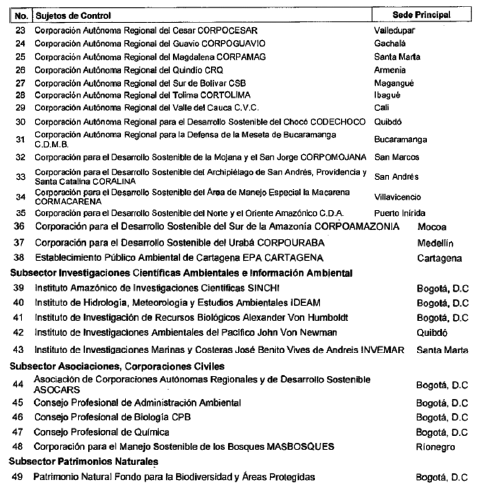 ARTÍCULO 11. CONTRALORÍA DELEGADA PARA EL MEDIO AMBIENTE. <Resolución derogada por el artículo 32 de la Resolución REJ-EJE-0088 de 2021> La Contraloría Delegada para el Medio Ambiente será competente para ejercer la vigilancia y el control fiscal a los siguientes sujetos de control:
