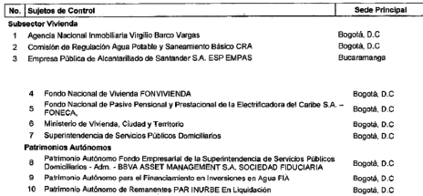 ARTÍCULO 15. CONTRALORÍA DELEGADA PARA EL SECTOR VIVIENDA Y SANEAMIENTO BÁSICO. <Resolución derogada por el artículo 32 de la Resolución REJ-EJE-0088 de 2021> La Contraloría Delegada para el Sector Vivienda y Saneamiento Básico será competente para ejercer la vigilancia y el control fiscal a los siguientes sujetos de control: