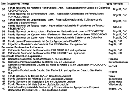 ARTÍCULO 2o. CONTRALORÍA DELEGADA PARA EL SECTOR AGROPECUARIO. <Resolución derogada por el artículo 32 de la Resolución REJ-EJE-0088 de 2021> La Contraloría Delegada para el Sector Agropecuario será competente para ejercer vigilancia y control fiscal a los siguientes sujetos de control: