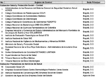 ARTÍCULO 13. CONTRALORÍA DELEGADA PARA EL SECTOR SALUD. <Resolución derogada por el artículo 33 de la Resolución REG-EJE-0093 de 2021> La Contraloría Delegada para el Sector Salud será competente para ejercer la vigilancia y el control fiscal a los siguientes sujetos de control: