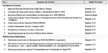 ARTÍCULO 15. CONTRALORÍA DELEGADA PARA EL SECTOR VIVIENDA Y SANEAMIENTO BÁSICO. <Resolución derogada por el artículo 33 de la Resolución REG-EJE-0093 de 2021> La Contraloría Delegada para el Sector Vivienda y Saneamiento Básico será competente para ejercer la vigilancia y el control fiscal a los siguientes sujetos de control: