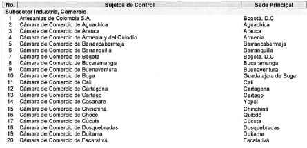 ARTÍCULO 3o. CONTRALORÍA DELEGADA PARA EL SECTOR COMERCIO Y DESARROLLO REGIONAL. <Resolución derogada por el artículo 33 de la Resolución REG-EJE-0093 de 2021> La Contraloría Delegada para el Sector Comercio y Desarrollo Regional será competente para ejercer la vigilancia y el control fiscal a los siguientes sujetos de control: