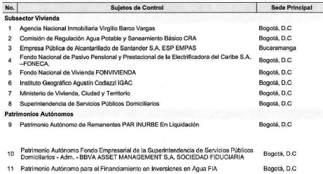ARTÍCULO 15. CONTRALORÍA DELEGADA PARA EL SECTOR VIVIENDA Y SANEAMIENTO BÁSICO. <Resolución derogada por el artículo 33 de la Resolución REG-EJE-0095 de 2021> La Contraloría Delegada para el Sector Vivienda y Saneamiento Básico será competente para ejercer la vigilancia y el control fiscal a los siguientes sujetos de control: