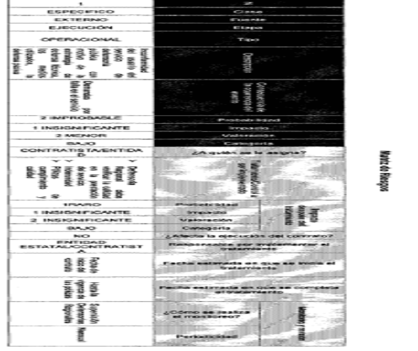 r) Matriz de Riesgos.- De acuerdo con lo previsto en el artículo 4o de la Ley 1150 de 2007 y los lineamientos del manual de riesgos expedido por Colombia Compra Eficiente, en la Entidad, se han definido como riesgos dentro de la ejecución del presente contrato, los relacionados en la Matriz que se anexa a la presente Resolución y la cual hace parte integral de la misma y de los contratos de Defensoría Pública.