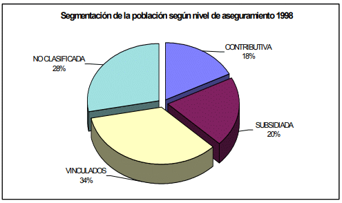 Segmentación de la población según régimen de aseguramiento 1998