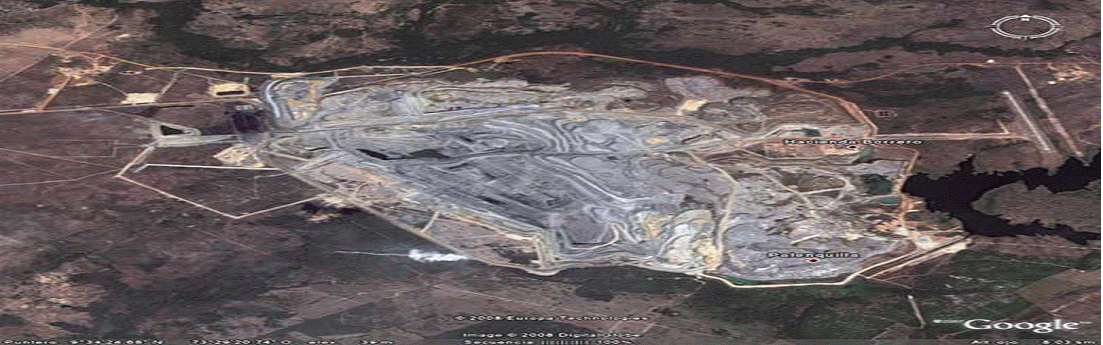 Fotografía satelital de las minas de carbón en la Jagua de Ibirico, El Paso y Becerril.