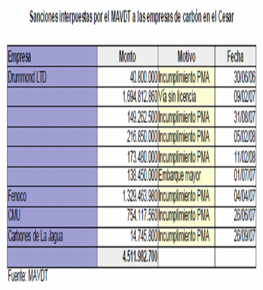 4. A comienzos del año 2008, la Defensoría del Pueblo hizo una visita a los departamentos del Cesar y del Magdalena para evaluar los impactos derivados de la explotación, transporte y embarque de carbón.