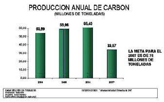 Como se observa, Colombia viene incrementando año tras año la producción de carbón, sobre todo con destino a las exportaciones. Se ha alcanzado el doble de producción en los últimos seis años, gracias principalmente a las explotaciones en el departamento del Cesar.