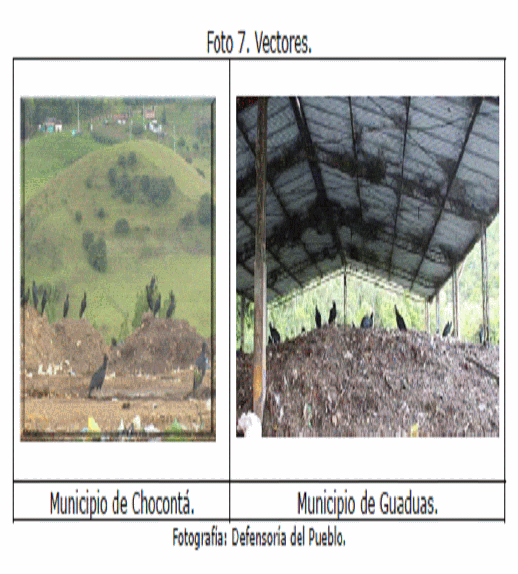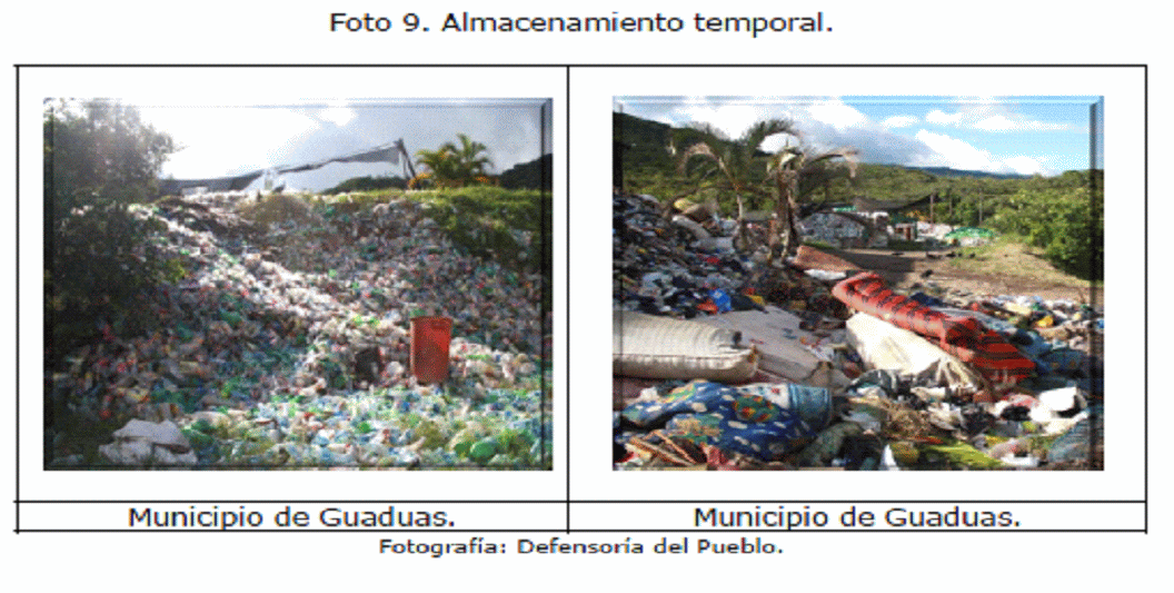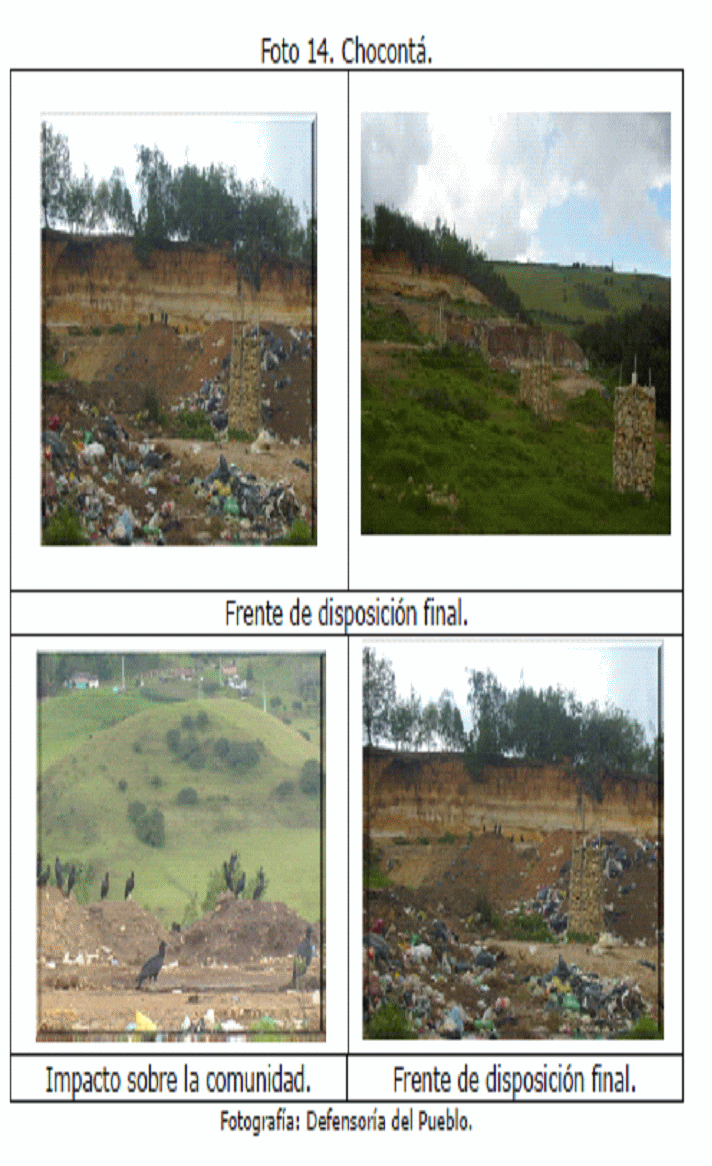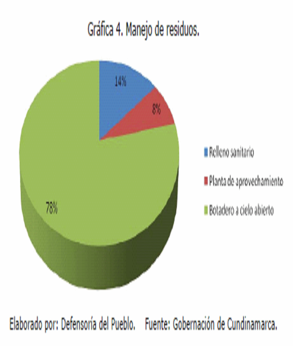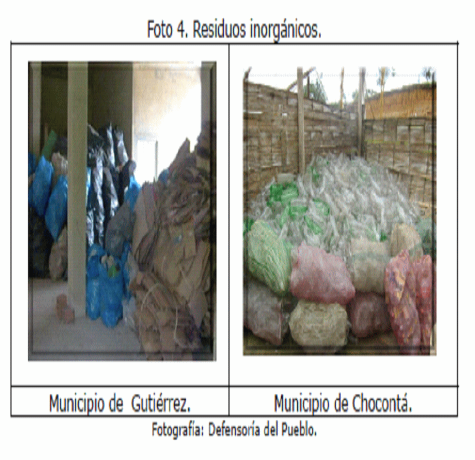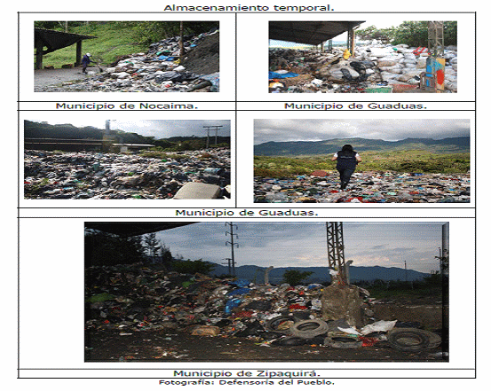 4. La Delegada para los Derechos Colectivos y del Ambiente y la Defensoría del Pueblo Regional Cundinamarca, en las visitas de campo a los municipios de Villapinzón, Chocontá, Cajicá, Zipaquirá, Cucunubá, Girardot, Bojacá, Gutiérrez, Fosca, Nemocón, Nimaima, Nocaima y Guaduas, entre otros, constataron la situación actual del aprovechamiento y la disposición final de los residuos sólidos en Cundinamarca, así como la percepción de la comunidad sobre el tema.