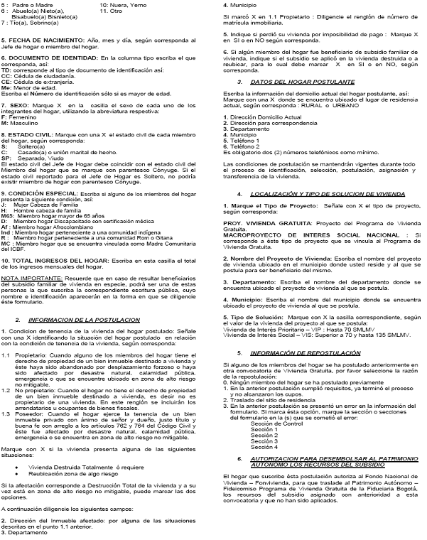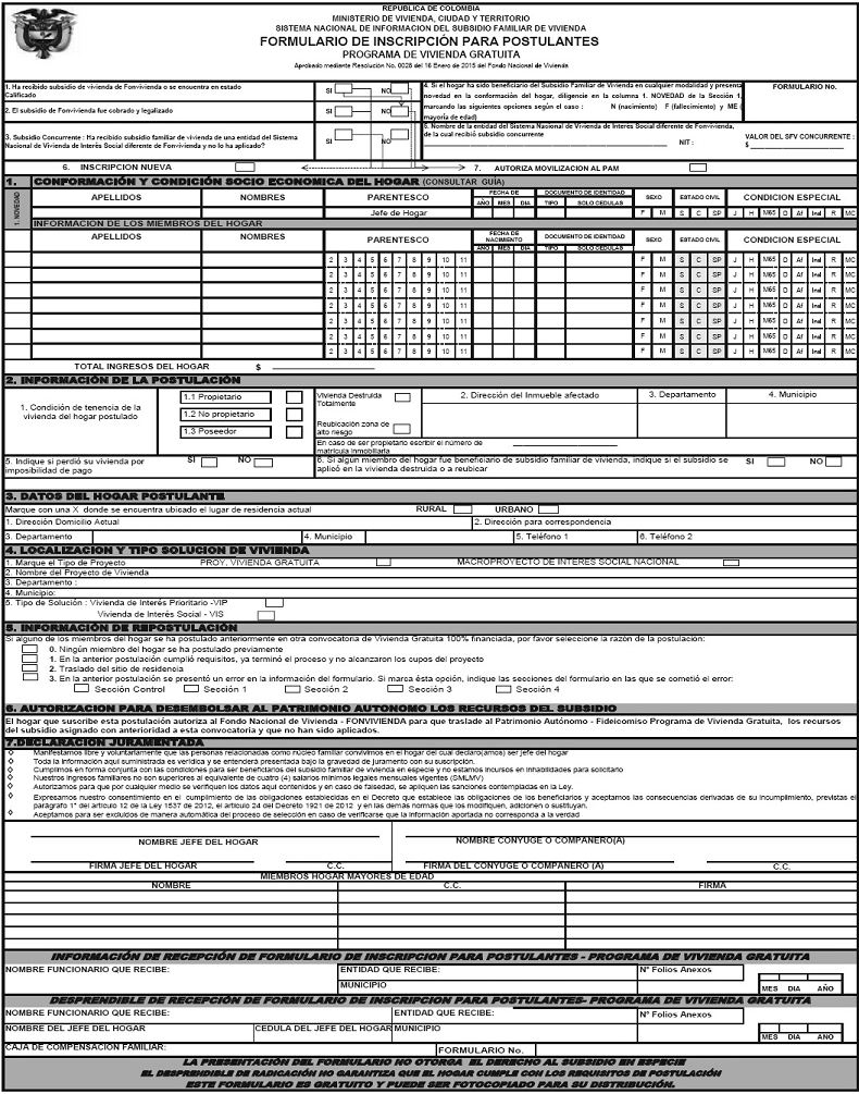 Por la cual se modifica el formulario de inscripción para postulantes al Programa de Vivienda Gratuita, con la respectiva guía para el diligenciamiento, adoptado mediante Resolución número 0864 de 2012.