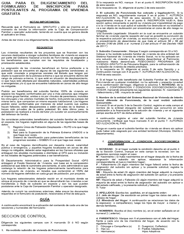 Que mediante Resolución número 0864 del 23 de noviembre de 2012, se adoptó formulario de inscripción para postulantes al subsidio familiar de vivienda en especie del Programa de Vivienda Gratuita, con la respectiva guía de diligenciamiento.