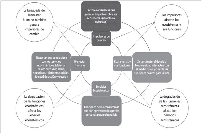 Figura 7. Relaciones existentes entre la biodiversidad y el bienestar humano.
