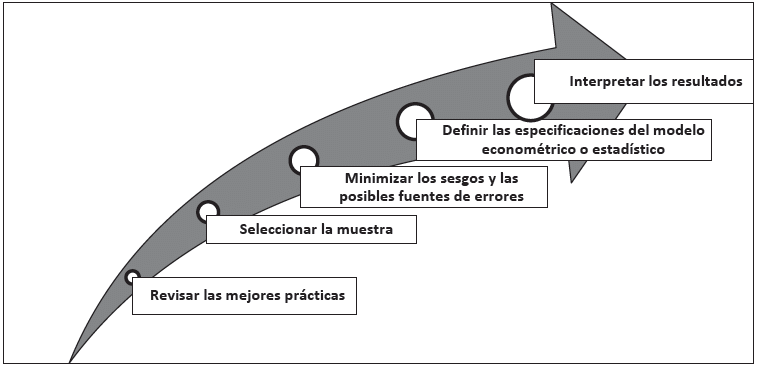 - Minimizar los sesgos y las posibles fuentes de errores: Esto se logra, en parte, aplicando las mejores prácticas y siguiendo adecuadamente los procedimientos estadísticos y econométricos que garantizan un correcto desempeño del modelo final de cada metodología.