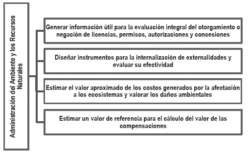 Figura 4. Usos de la Valoración Económica Ambiental en el marco de la administración del ambiente y los Recursos Naturales.