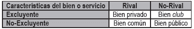 Tabla 3. Clasificación de los bienes en la economía.