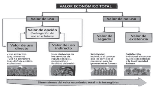 Figura 6. Componentes del Valor Económico Total de la biodiversidad y los servicios ecosistémicos.
