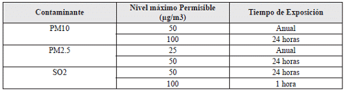 Niveles máximos permisibles de contaminantes criterio en el aire