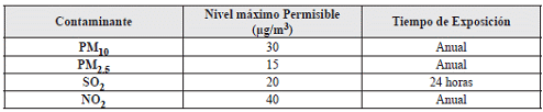 Niveles máximos permisibles de contaminantes en el aire para el año 2030