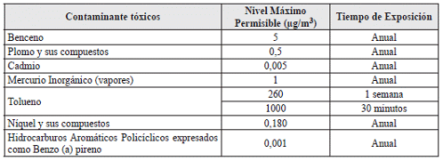 Niveles máximos permisibles de contaminantes tóxicos en el aire